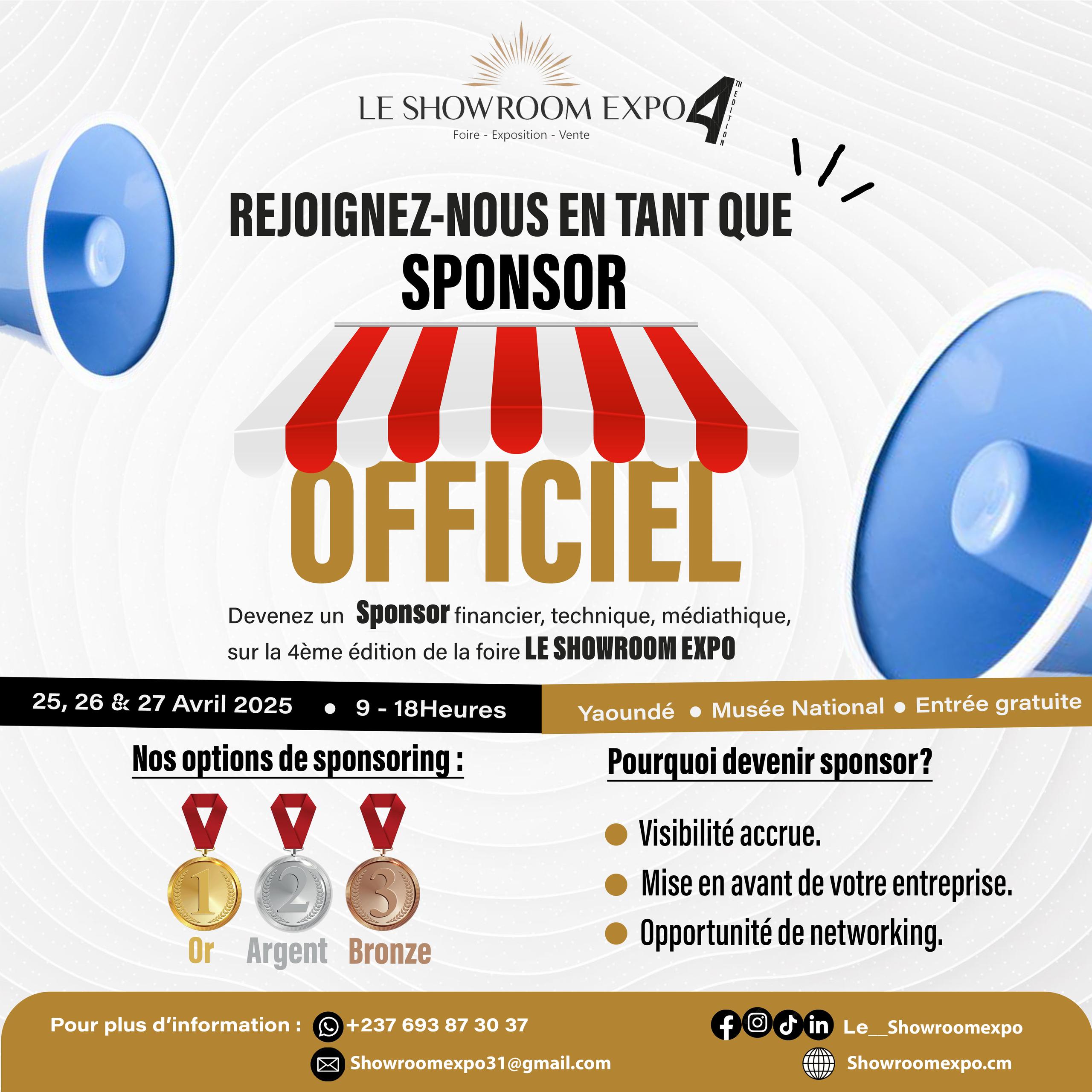 Être sponsor à « Le Showroom Expo » est une stratégie bénéfique pour toute entreprise souhaitant accroître sa visibilité, établir des relations solides et renforcer son image de marque tout en soutenant un événement dynamique et engageant. Pour vous enregistrer en tant que SPONSOR cliquez sur JE VEUX ETRE SPONSOR.